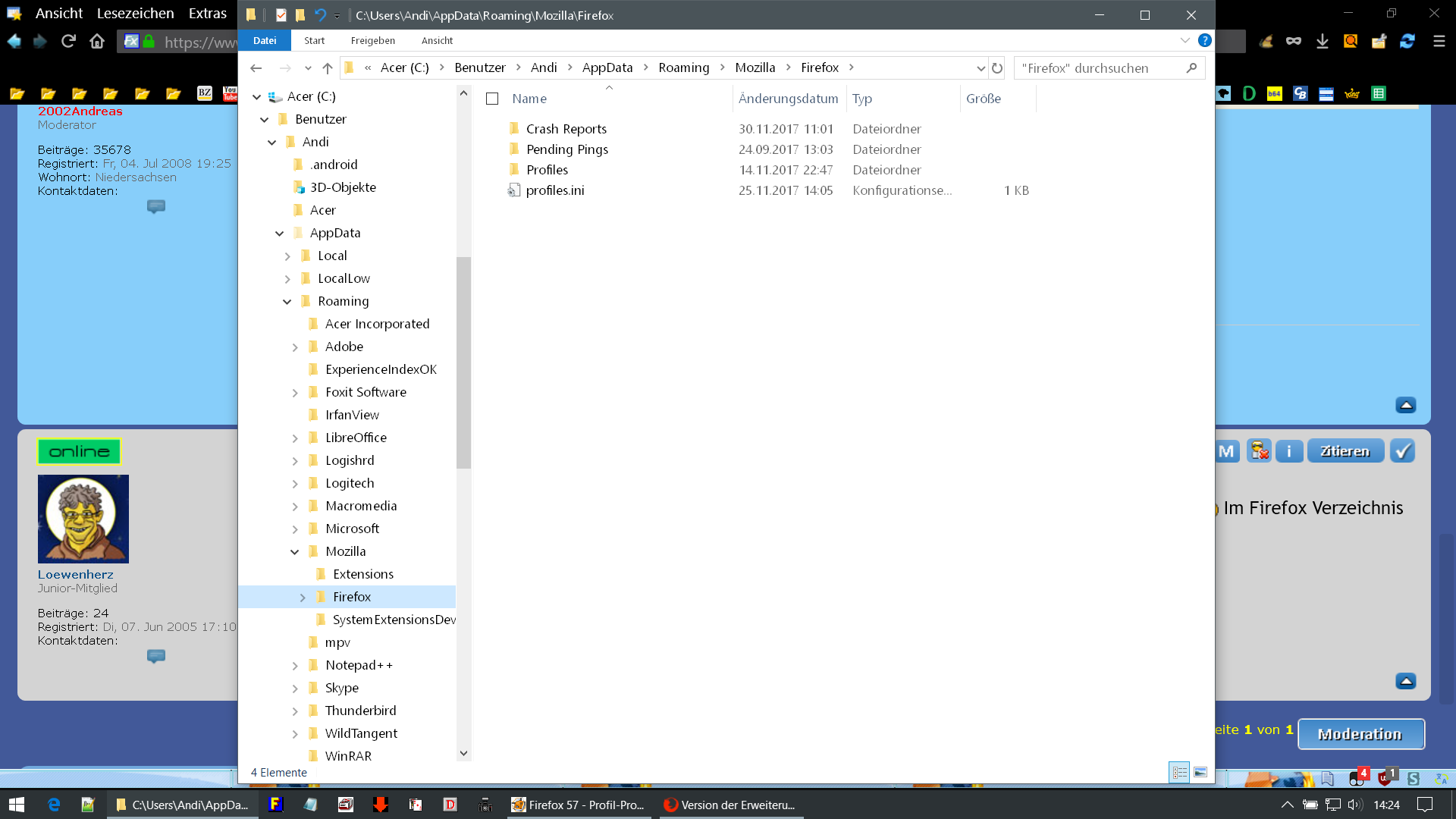 Hallo, da mir bislang weder die Suchmaschine meines Vertrauens, noch ein Stöbern hier oder das Update auf 57.0.1 weitergeholfen haben, hier mein Problem: