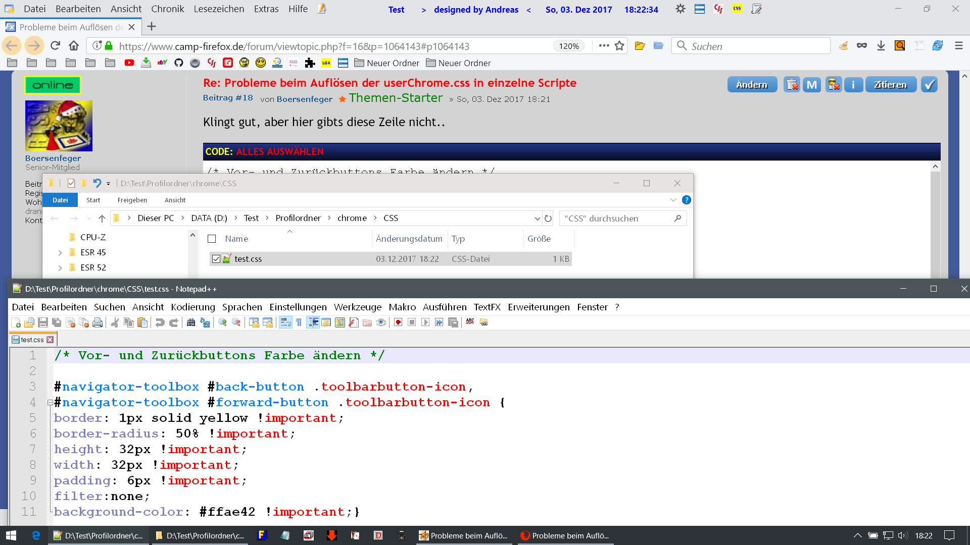Wie 2002Andreas vorgestellt hat, löse ich gerade meine userChrome.css in einzelne Scripte auf und importiere diese dann, wie beschrieben. Dabei bin ich wechselnd erfolgreich... :?