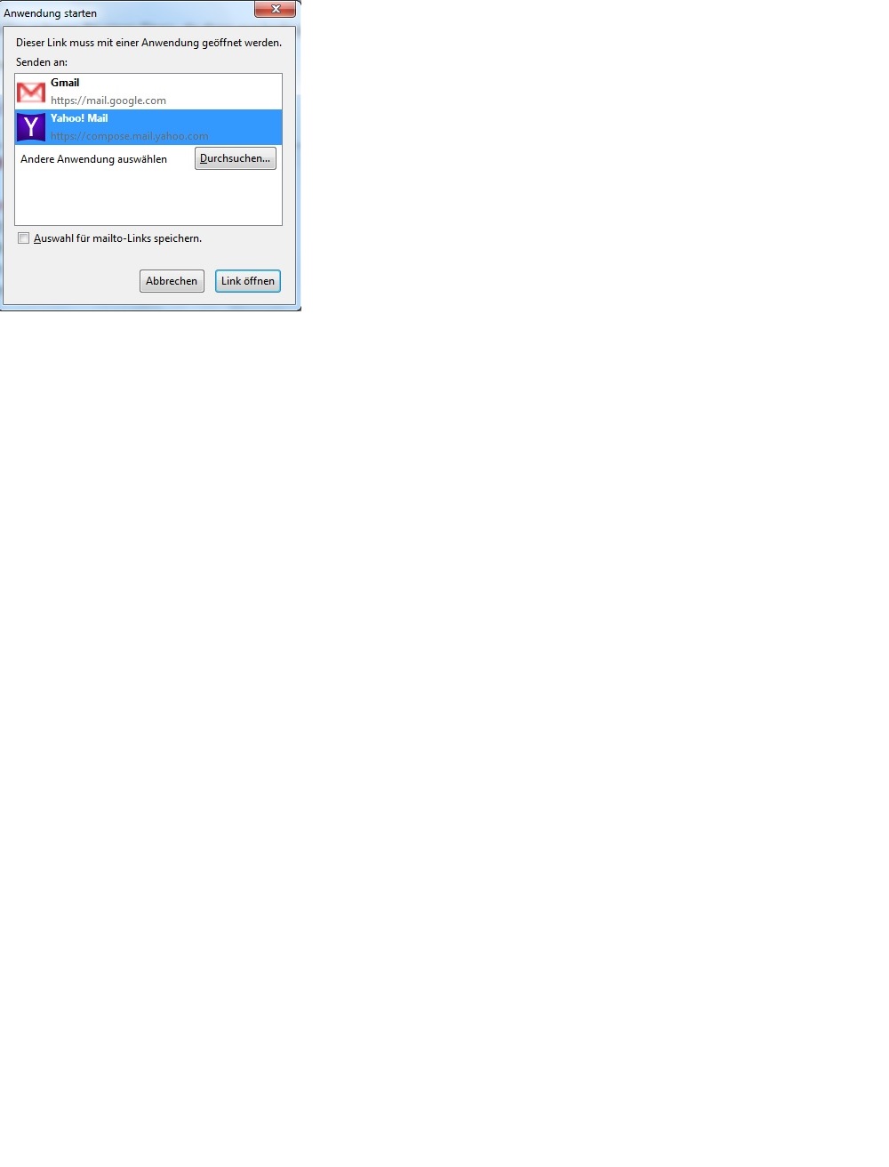 Wenn ich auf einen solchen Link klicke, bekomme ich ein Auswahlfenster, in welchem ich auf Google-Mail oder auf Yahoo-Mail