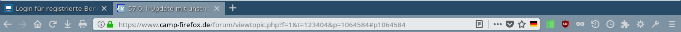 das jüngste Update auf Version 57.0.1 hat bei mir in allen drei verwendeten Profilen die (mühsam eingerichtete) Sortierung meiner "Lieblingswerkzeuge" [wer hat sich bloß diesen Begriff ausgedacht?] in der Symbolleiste durcheinander gebracht. Dabei wurden nicht nur Reihenfolge und Anordnung verändert, sondern auch ungeliebte [