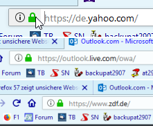 Ja richtig, in anderen Browsern wird das grüne Schloss korrekt angezeigt bei den Seiten, so wie bei Euch auch, aber eben nicht im Firefox 57.