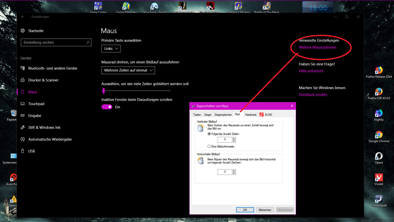 • ggf. auch mal Maustreiber auf Aktualität überprüfen und auch bei den erweiterten Mauseinstellungen ggf. noch mal schauen (siehe Bilder)
