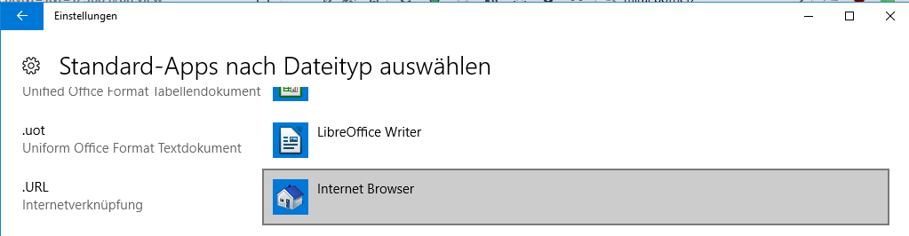 ... AngelOfDarkness, fast richtig, die Deskopverknüpfungen für Programme /Ordner sind so, wie ich diese gemacht hatte, alle INTERNETVerknüpfungen haben jetzt die Endung .url und das Firefoxsysmbol auf dem Deskop. Wirklich weiter bin ich auch noch nicht ... Zitronella, bei den "Standard-Apps nach Dateityp auswählen" war bei .url Firefox hinterlegt, habe dies geändert auf "Internet Browser" und habe dadurch wieder die von mir hinterlegten Bilder wieder. Erst mal super. Aber die Endung .url ist noch angehängt ... Und diebekommen wir doch auch noch weg, oder?
