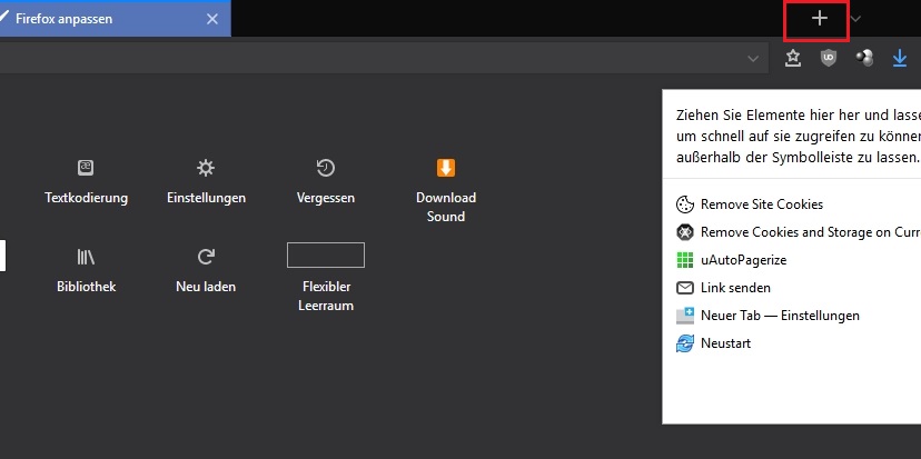 bisher öffnete sich der Firfox bei mir mit der voreingestellten Firefox-Starseite. Danach war ein Tab mit einem Plus-Zeichen. Wenn ich das anklickte, kam die Group Speed Deal Seite mit den 8 eingerichteten Bildern.