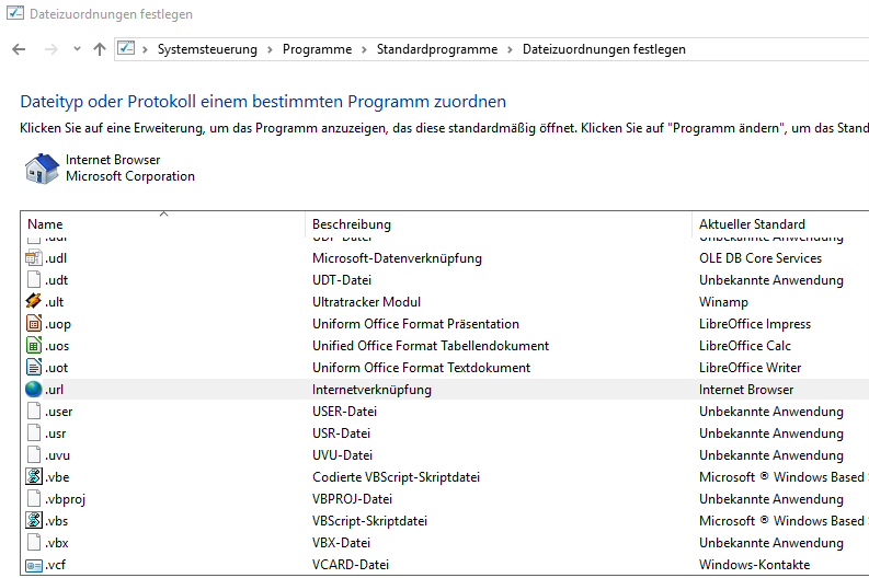 Systemsteuerung\Programme\Standardprogramme\Dateizuordnungen festlegen