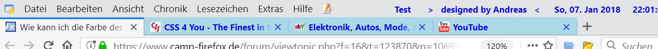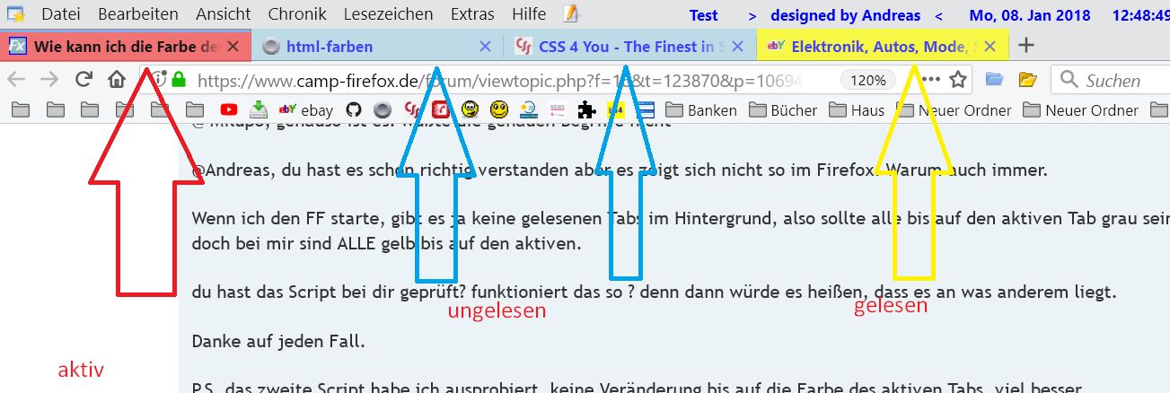Wenn ich den FF starte, gibt es ja keine gelesenen Tabs im Hintergrund, also sollte alle bis auf den aktiven Tab grau sein, doch bei mir sind ALLE gelb bis auf den aktiven.