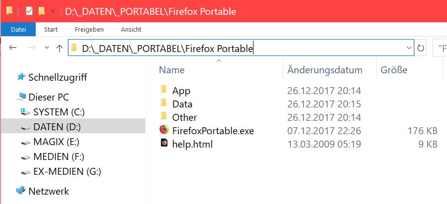 Versuch, neben dem laufenden, installierten Firefox, eine portable Version zu starten.