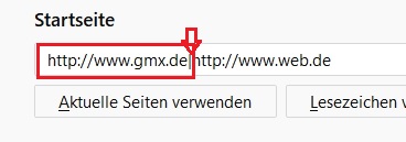 Unter Einstellungen der Startseite die Adresse (mit dem senkrechten Strich)von GMX löschen.