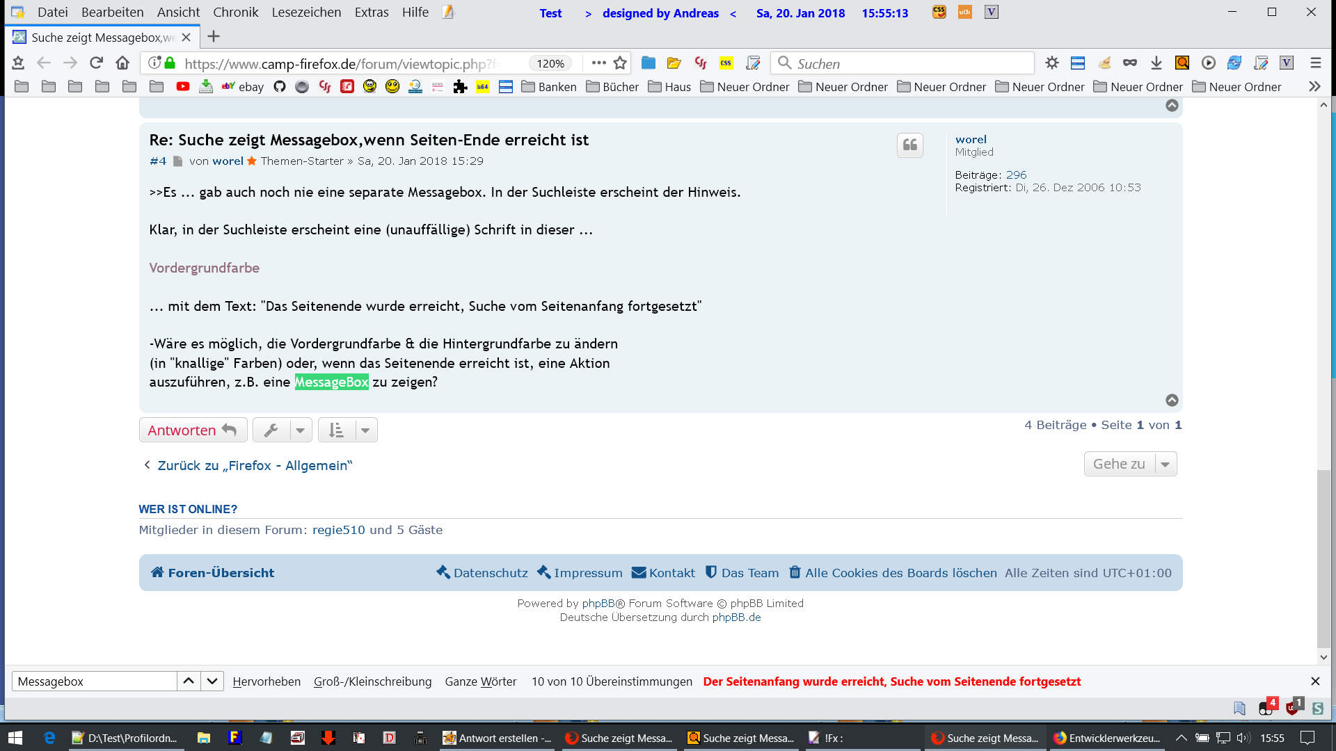 Es wird keinerlei Messagebox beim Erreichen des Seitenendes angezeigt.