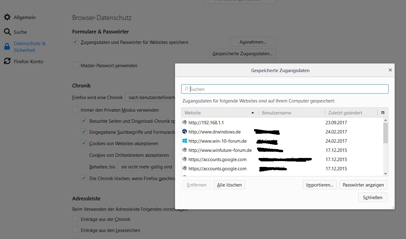 ich muss irgendwas getan haben, dass all meine gespeicherten Passwörter auf einen Schlag gelöscht wurden. Während des Surfens habe ich auf einer Seite plötzlich festgestellt, dass die nicht mehr automatisch ausgefüllt werden, wobei das vorher in der Session ging. Ich weiß nicht was ich gemacht habe, und ich weiß auch nicht ob und wie ich das wieder rückgängig machen kann. Mein letztes Profil-Backup ist leider schon was älter...