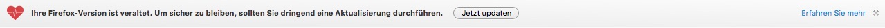 ZitatIhre Firefox-Version ist veraltet. Um sicher zu bleiben, sollten Sie dringend eine Aktualisierung durchführen