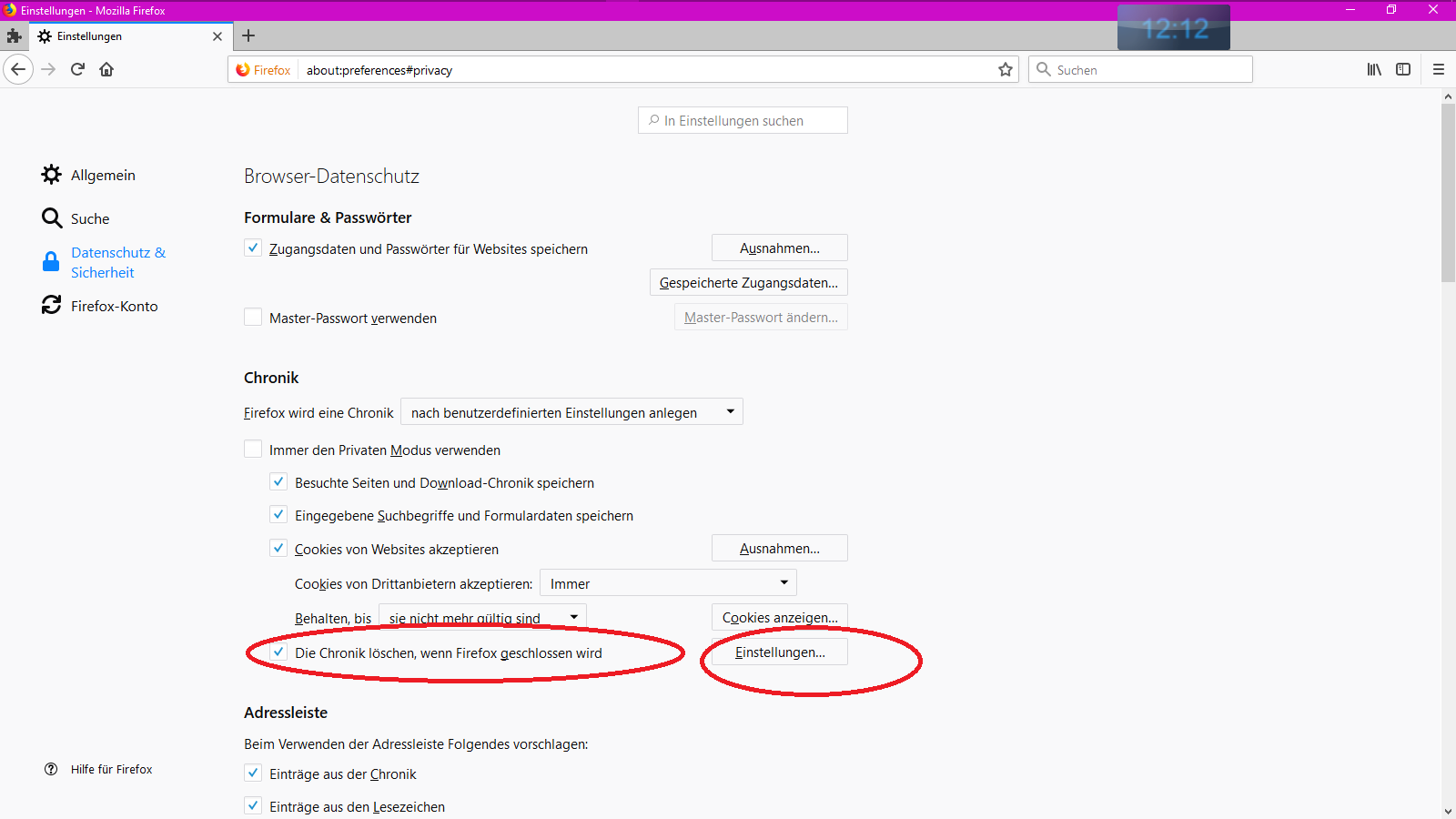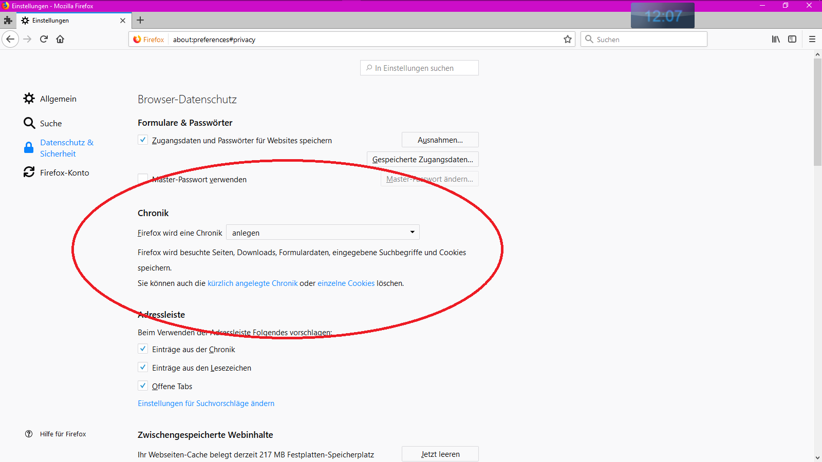 1. Ich hatte bemerkt, dass die Chronik nur noch Heute und Gestern anzeigt.