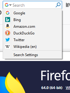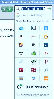 • Option: Altes Aufklappmenü zur Suchmaschinenumstellung bekannt aus der alten Suche (nur für Firefox 64+)