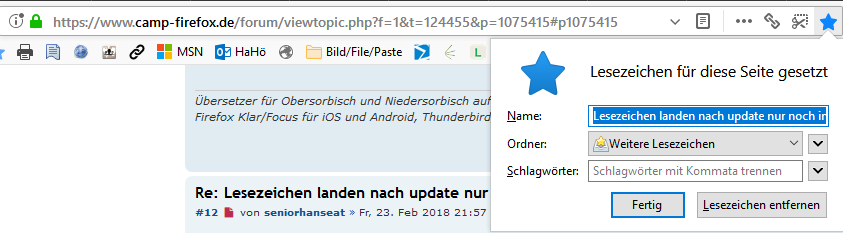 Lesezeichen landen nach update nur noch in "Witere Lesezeichen"
