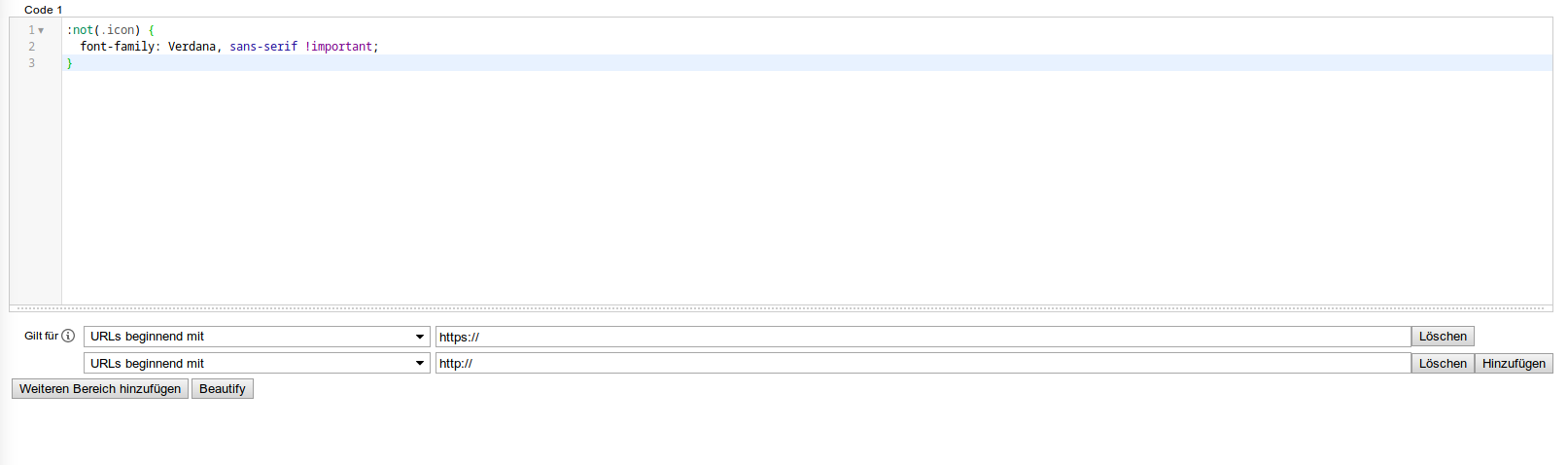 Wie kann ich trotz des Codes (Schrift Verdana auf allen Seiten) bewirken, dass die Zeichen korrekt dargestellt werden?