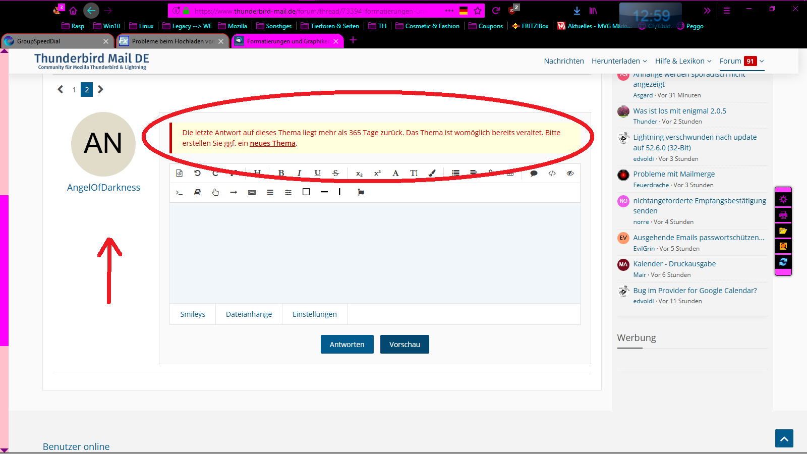 Aber dazu kommt bei der Schnellantwort gleich ein Hinweis, dass mehr als 365 Tage nix geschrieben wurde zum Thema und man doch besser einen neuen erstellen soll. (siehe Bild).