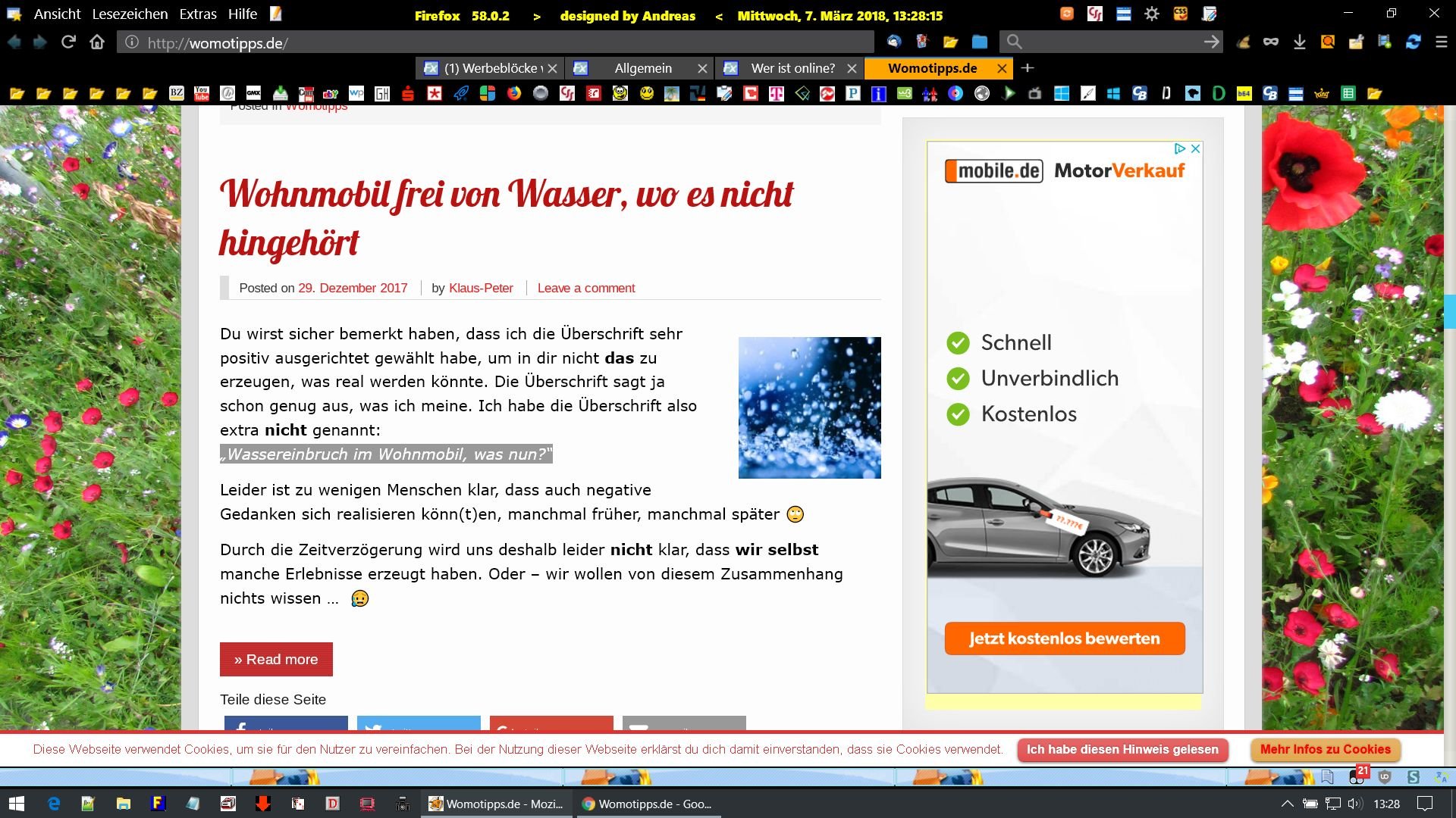 Ich habe in den Datenschutz & Sicherheits-Einstellungen im Firefox schon alles ausprobiert, auch den AdBlocker "uBlock Origin 1.15.10" ein- und ausgeschaltet in Kombi mit Schutz vor Aktivitätenverfolgung-Umstellungen und "Do Not Track"-Einstellungen.