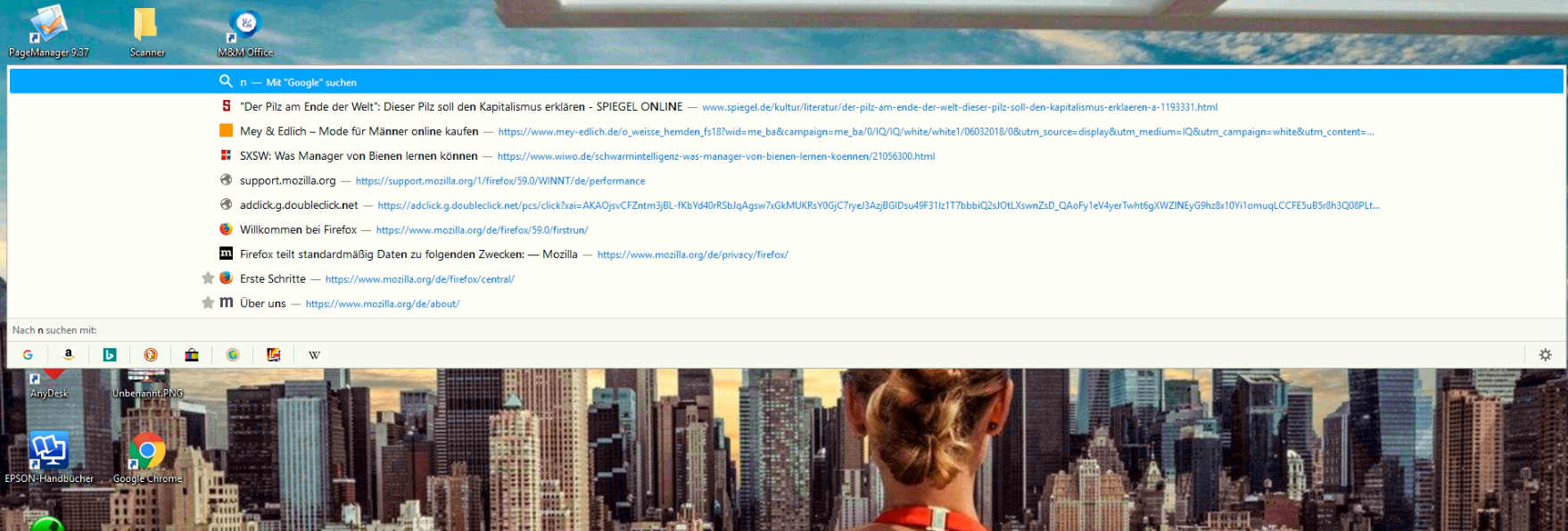 nach der Aktualisierung auf die Version erscheint nach dem starten von FF kurz das Fenster und verschwindet dann direkt wieder. In der Taskleiste ist erkennbar das FF läuft. Wenn ich nun Tastatureingaben machen sehe ich, dass diese in der Suchzeile vom FF eingetragen werden und mir Vorschläge angeboten werden. Siehe Screenshot.