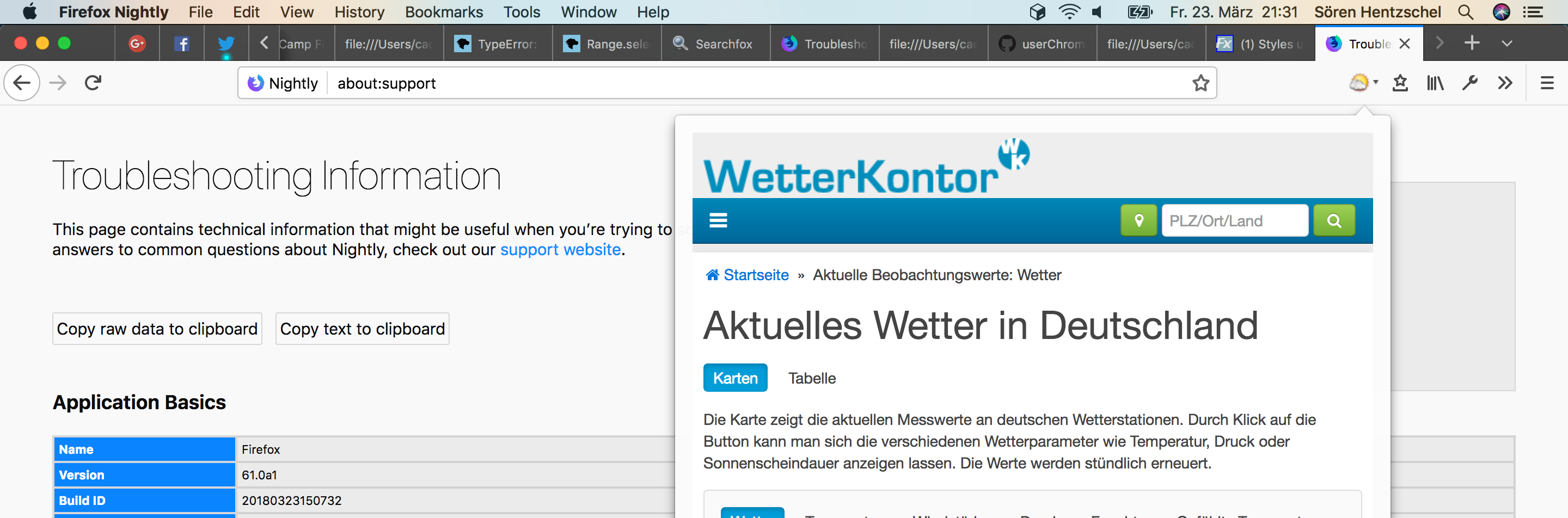 Also css Codes funktionieren hier im aktuellen Nightly, aber eben Skripte nicht.