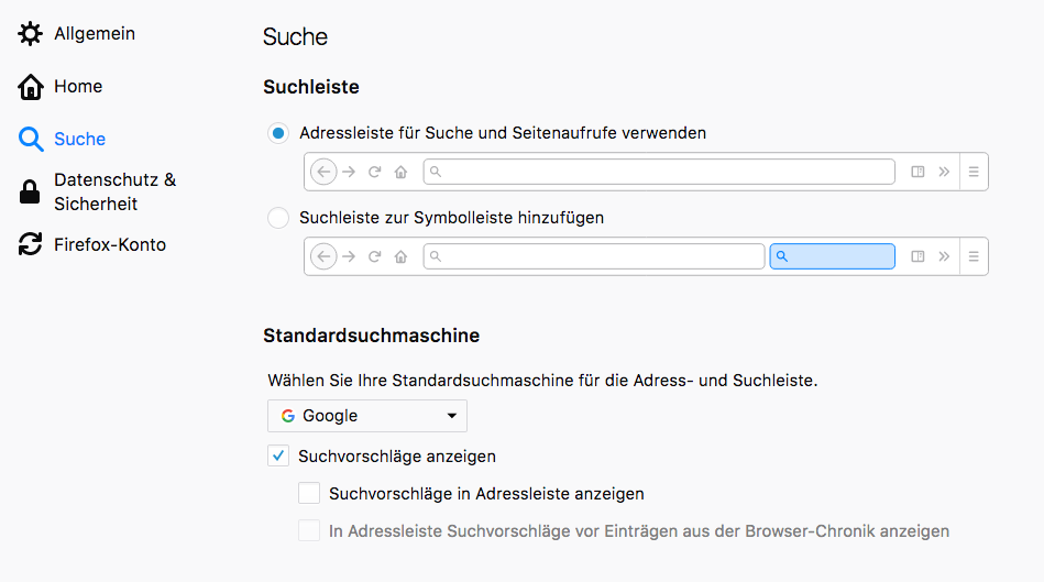 • Sofern es denn um die Vorschläge von der Standard-Suchmaschine geht, welche an der Lupe zu erkennen sind (siehe Screenshot von Msfreak) kannst du das in den Firefox-Einstellungen im Reiter "Suche" deaktivieren. Oder geht es um besuchte Seiten aus der Chronik? Oder Lesezeichen (wären an einem Stern zu erkennen)? Das geht aus dem Startbeitrag leider nicht hervor.