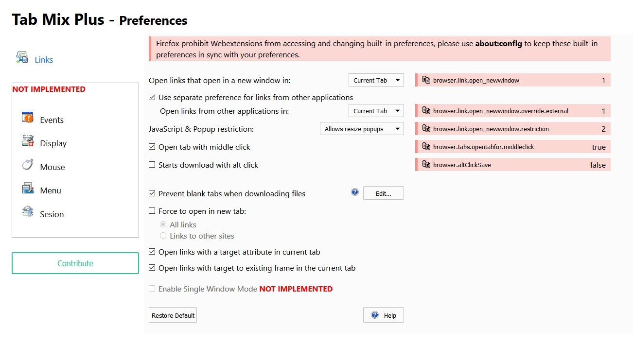 das hilft leider nicht. Ausgehend von Namen der Erweiterung, gehe ich davon aus, dass es beim Verhalten Neuer Tab vs. Neues Fenster geht.
