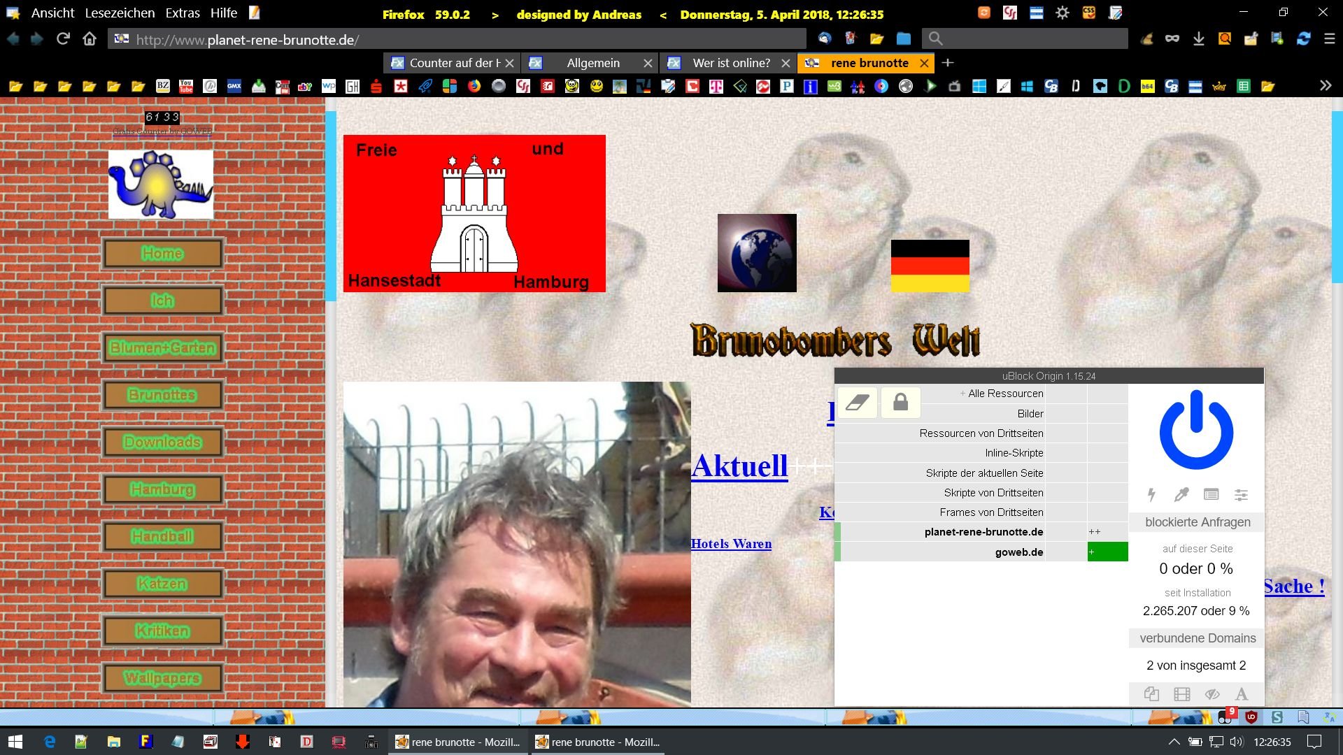Auf meiner Homrpage wird der Counter ( Zähler ) nicht vom Firefox angezeigt - angezeigt wird lediglich der Link zur Bereitstellungsseite des Counters. ( Homepage > http://www.planet-rene-brunotte.de/ )