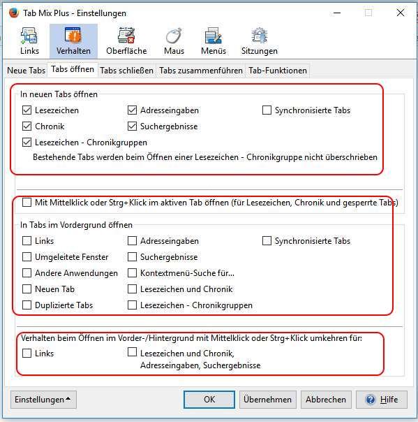 • Ansonsten schau dir auch mal Tab Mix WebExtension an: https://addons.mozilla.org/de/firefox/add…s-webextension/