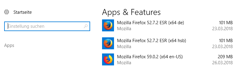 auf der Win10-Partition zwei Firefoxe installiert, der 59.0.2 und der ESR-52.7.3.