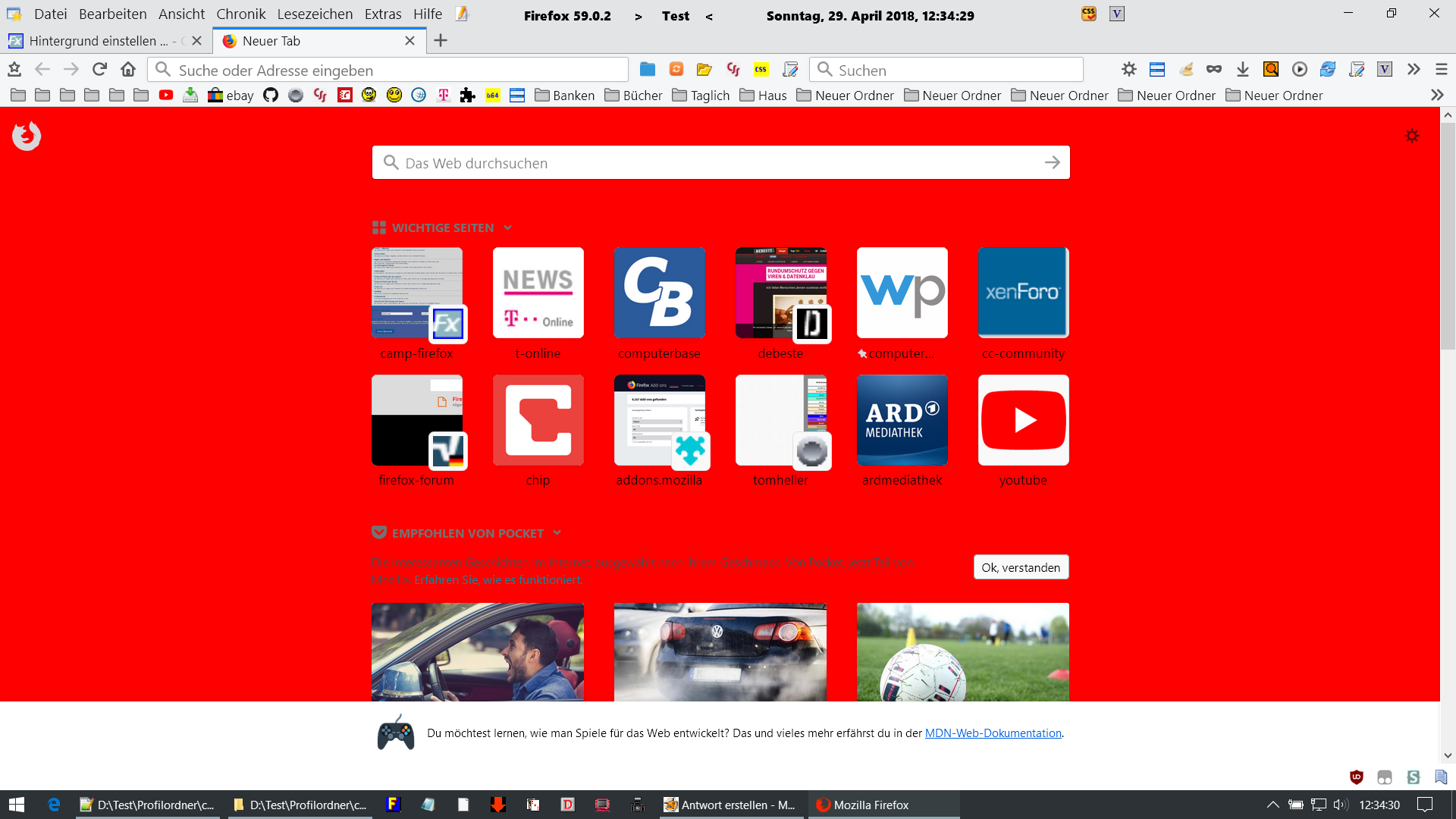 Mein Problem ist folgendes: Ich habe mir den neuesten FF installiert und möchte diesen für mich gestalten. Alles funktioniert bestens, nur - ich kann den Hintergrund für " das Fenster " in dem sich die zwölf kleinen App´s befinden einfach nicht ändern !!