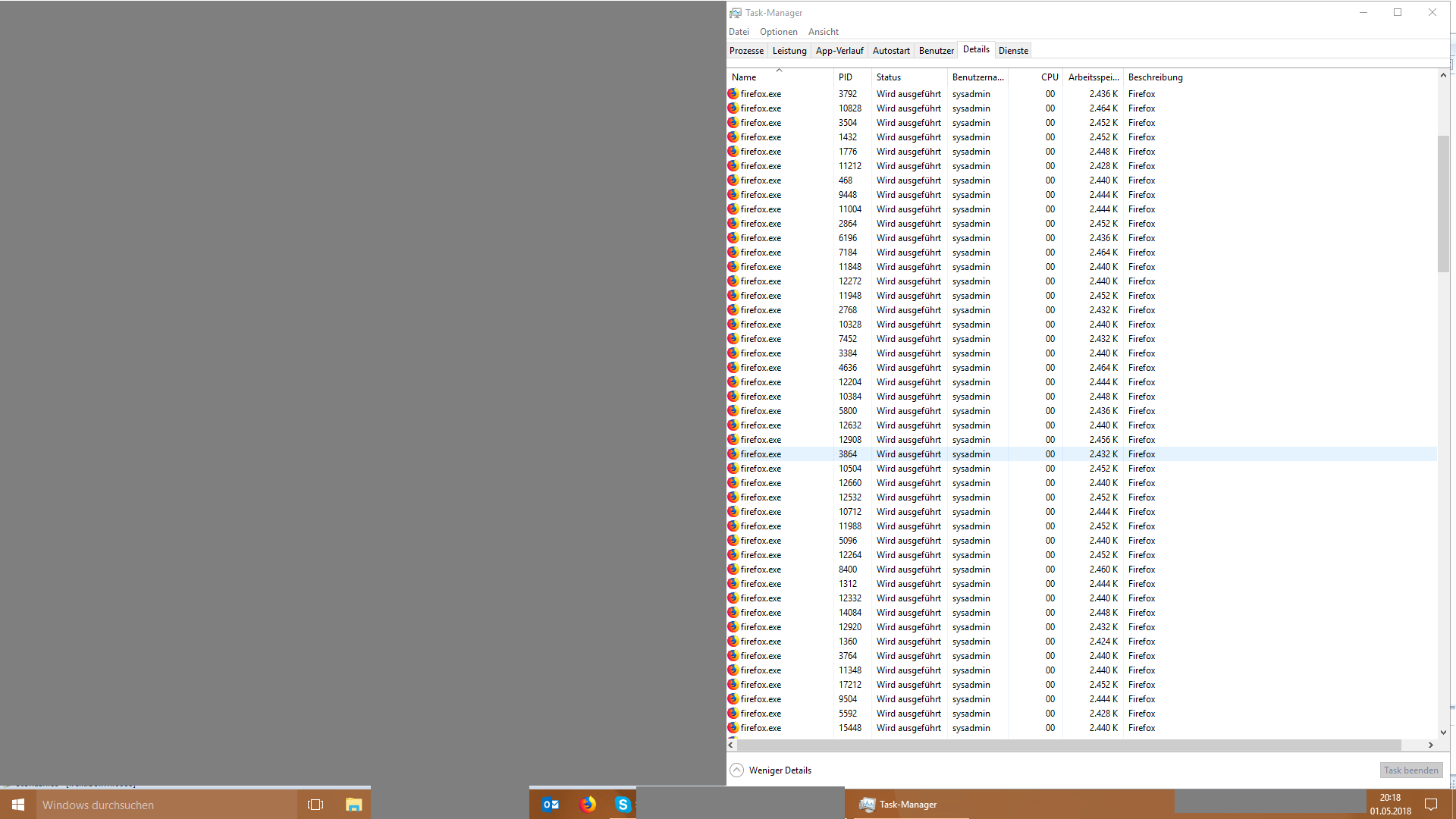 ich habe schon seit längerem das Problem, dass so länger der Firefox offen ist und immer wieder Tabs geöffnet/geschlossen werden, die Anzahl der Prozesse, die im Task-Manager sichtbar sind, immer mehr ansteigt. Auch wenn der Firefox dann geschlossen wird bleiben die Prozesse trotzdem aktiv und müssen dann einzeln geschlossen werden bzw. der PC neu gestartet werden.
