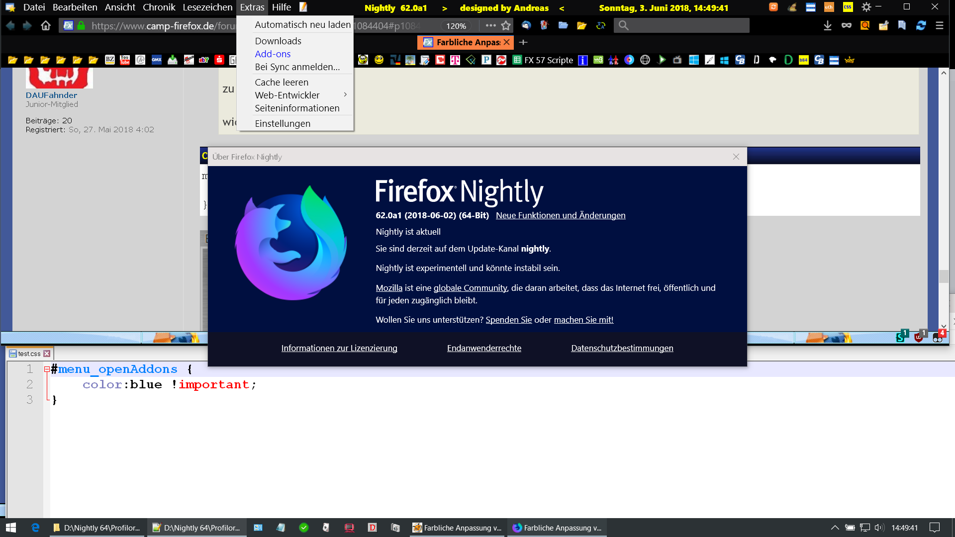 falls es jemanden interessiert, bei dem dunklen Menü Hintergrund ab FF 61.* lassen sich Einträge wunderbar seinen Bedürfnissen anpassen (wie z.B. "unwichtige" Einträge ausgrauen)