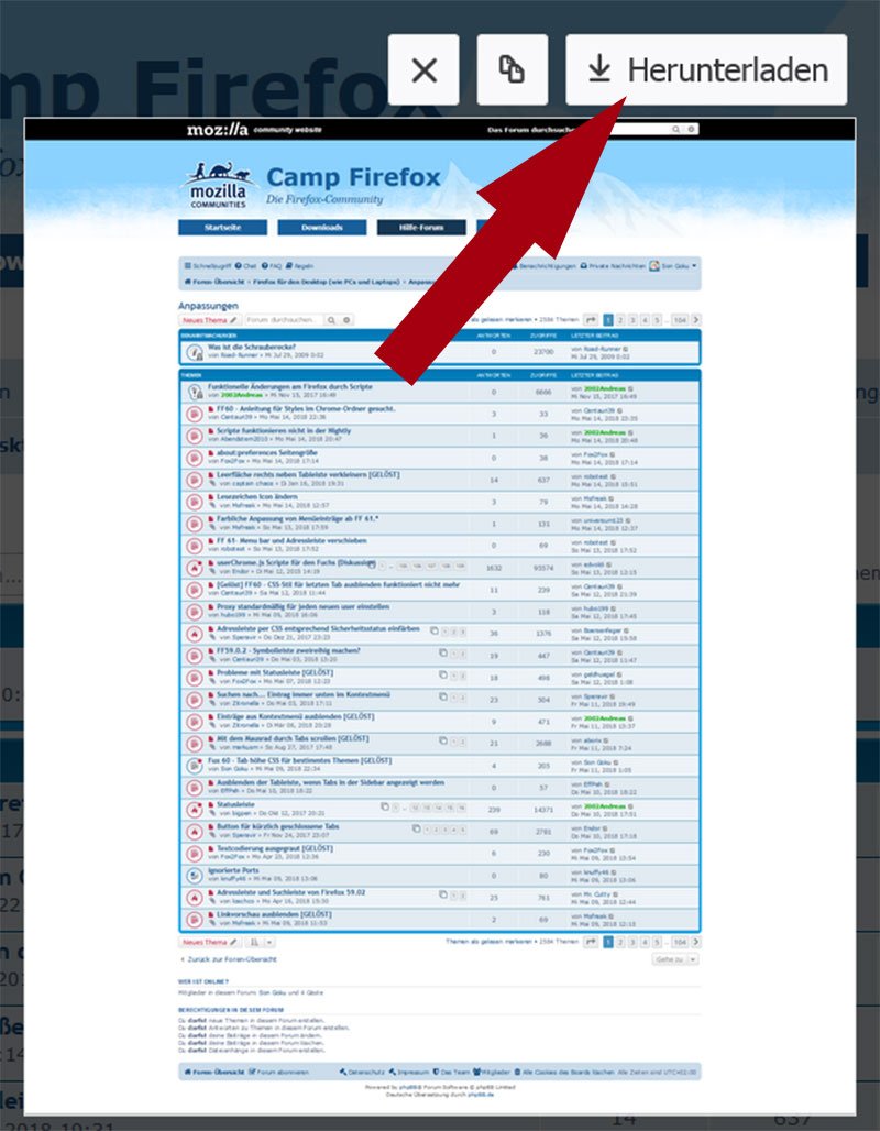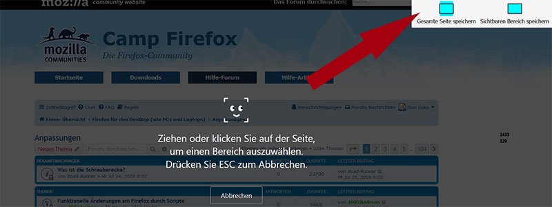 • Dass er das eingebaute Programm des Firefox verwendet sieht man an seinen Bildern. Er will sich doch nur nicht durch die Abfragen klicken, sondern einen Button mit dem voreingestellten Ablauf: ein Klick und die Seite (nicht Bildschirm) ist gespeichert.