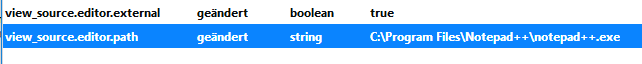 Quelltext in einem externen Editor öffnen - ändere diese Werte unter about:config wie folgt:view_source.editor.external auf true