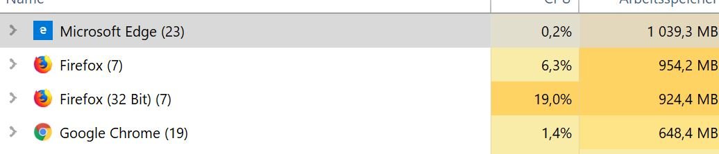 Hallo, ich habe ein RAM und CPU Problem. Egal ob 3 Tabs offen sind oder 15, RAM steigt stetig bis 6GB an, CPU stets bei 20-30%. Habe bereits neues Profil angelegt, alles bereinigt, neu installiert etc.