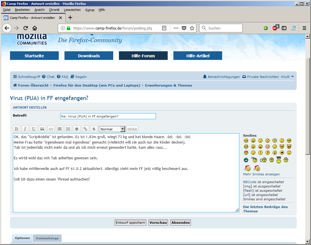 Treiben hier ScriptKiddies ihr Unwesen oder habe ich mir einen Virus eingefangen? Avira hat aber keine PUA gemeldet.