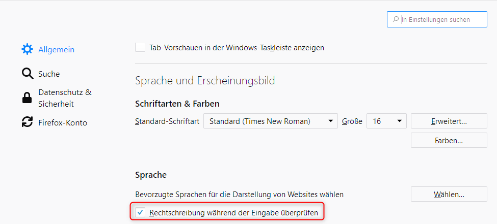 Hast du denn wirklich im Suchfeld der Einstellungen das Wort Rechtschreibung richtig eingegeben? Du kannst auch so vorgehen: