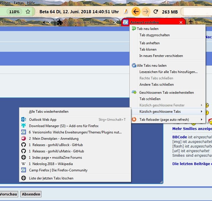 immer wen ich ein Rechtsklick mache auf Tab verschwindet die Menüleiste und taucht nich mehr auf (nur die Symole mini,Voll und X bleibt stehen)