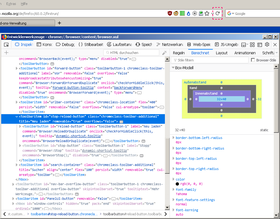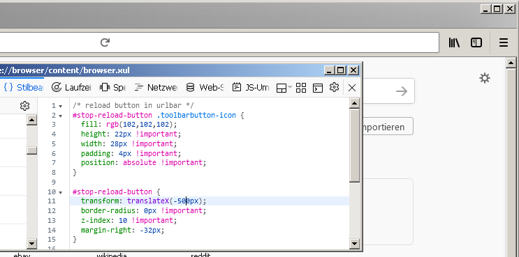 Die einzige CSS Anweisung die Auswirkung auf #stop-reload-button hat ist max-height, aber die schrumpf dann leider die ganze nav-bar zusammen.