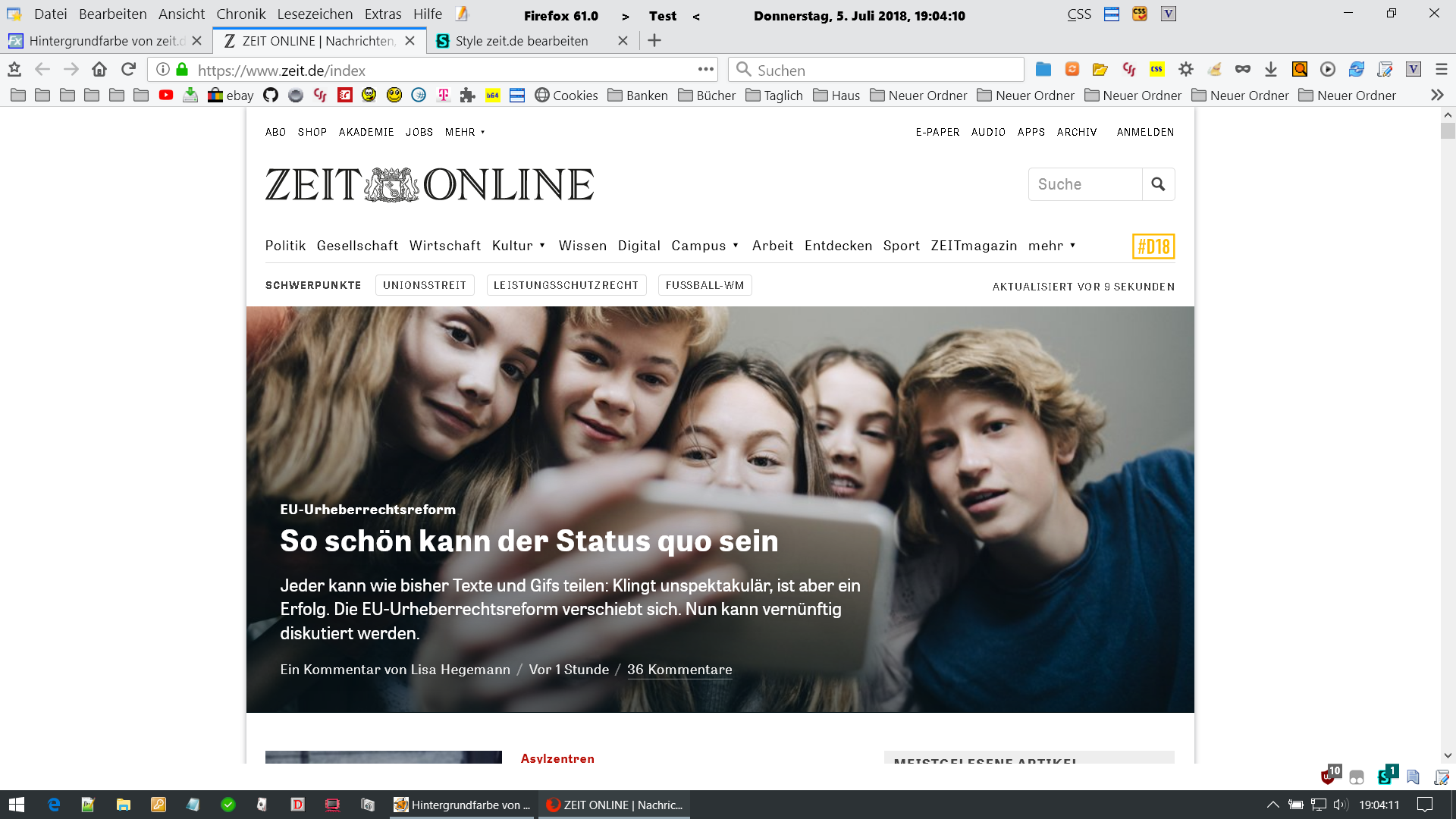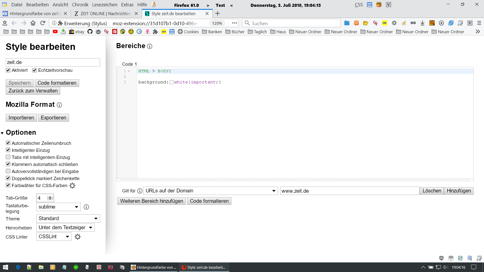 Hintergrundfarbe von zeit.de ändern