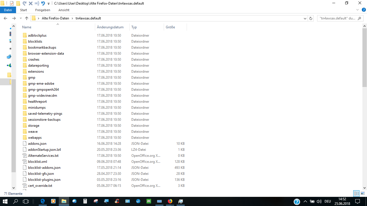 Das einzige, was ich in der Zwischenzeit gemacht habe, ist das Löschen von "Wichtige Seiten"