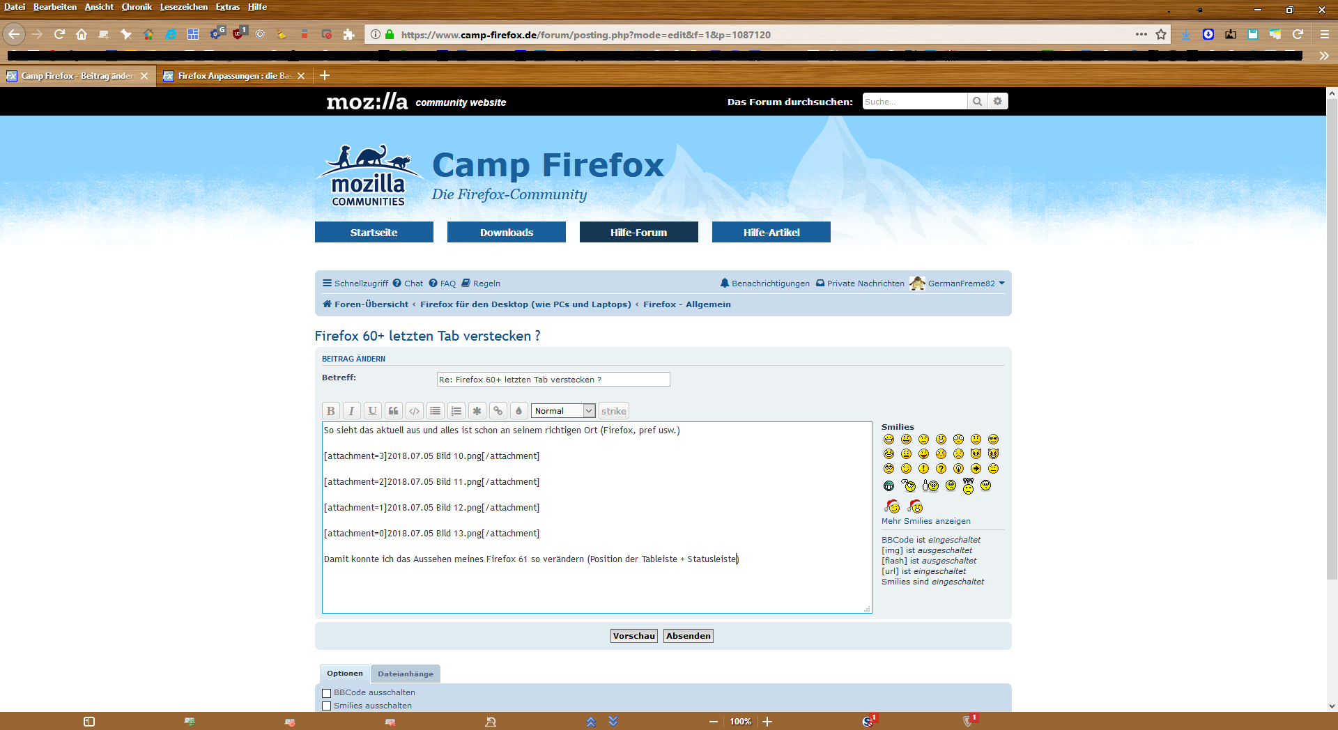 Der letzte TAB müßte dauerhaft versteckt sein, egal was in dem zu sehen ist und ich muß den Inhalt des TABs auch benutzen können.Die Einstellung gab es im alten Firefox in TABMixPlus und die fand ich sehr hilfreich, was allerdings im neuen Firefox nicht mehr geht.