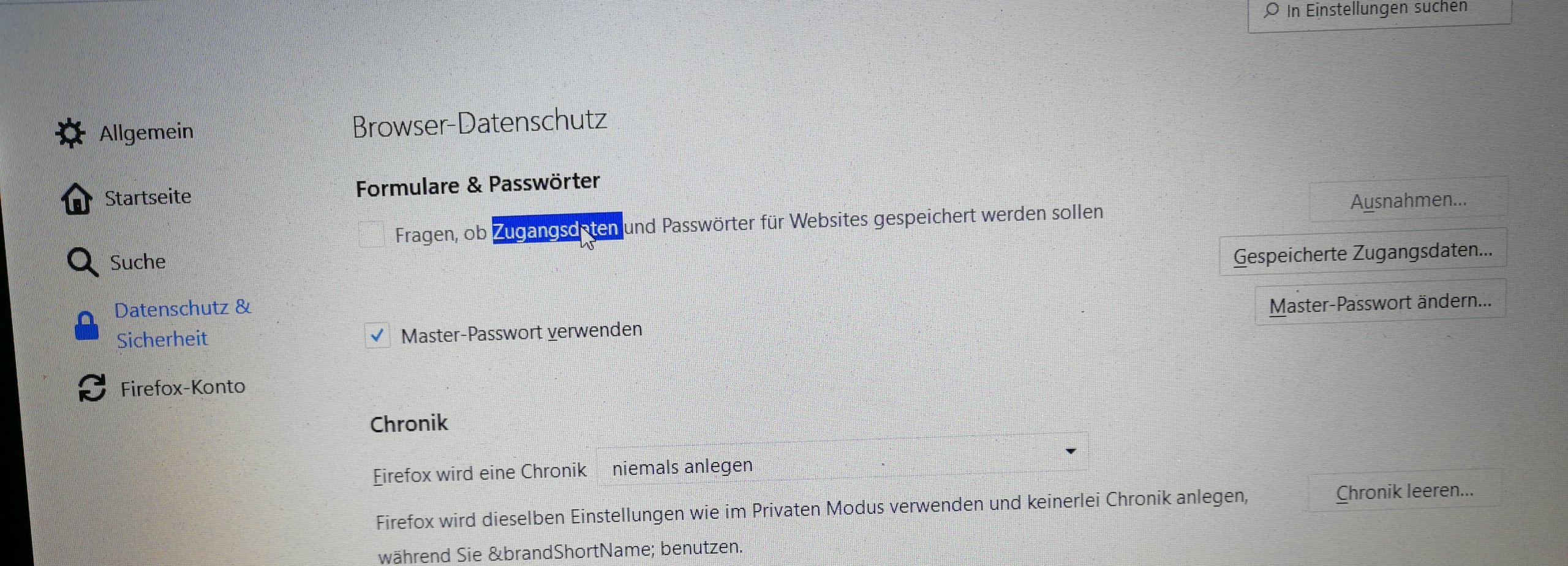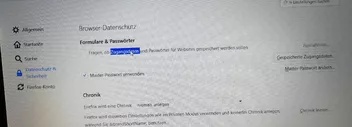 Bei GC wurde man gefragt, ob man Pw speichern möchte - hier ist es wohl so, dass es in der Adresszeile links ein Schlüsselsymbol geben soll - tuts aber bei mir nicht....weiter gegoogelt heißt es dann, dass es in den Einstellungen angehakt sein muss, wenn man gefragt werden möchte...diese Zeile unter "Datenschutz/Sicherheit ---> Formulare und Passwörter".....ist allerdings bei mir ausgegraut, daher lässt sich genau da nix anhaken...was mach ich falsch - danke für Hilfe.