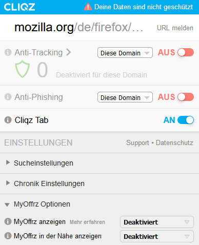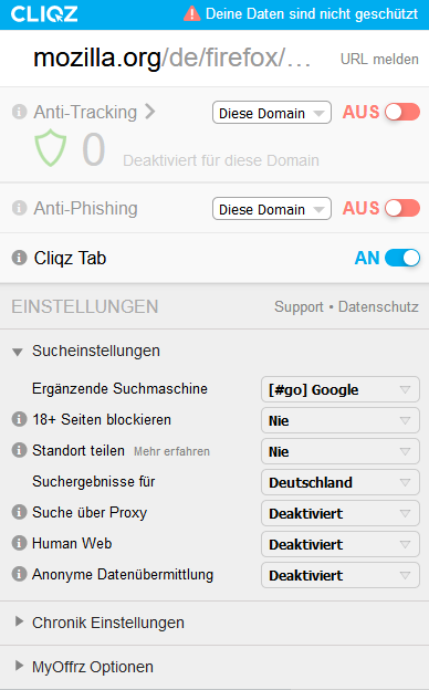 Ladet euch mal bitte die folgende Erweiterung => https://addons.mozilla.org/de/firefox/addon/cliqz