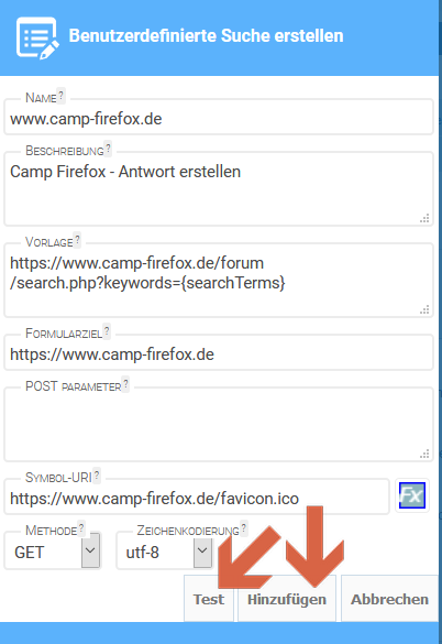 !1.) Rechtsklick ins Suchfeld der jeweiligen Seite und "Benutzerdefinierte Suche hinzufügen" anklicken
