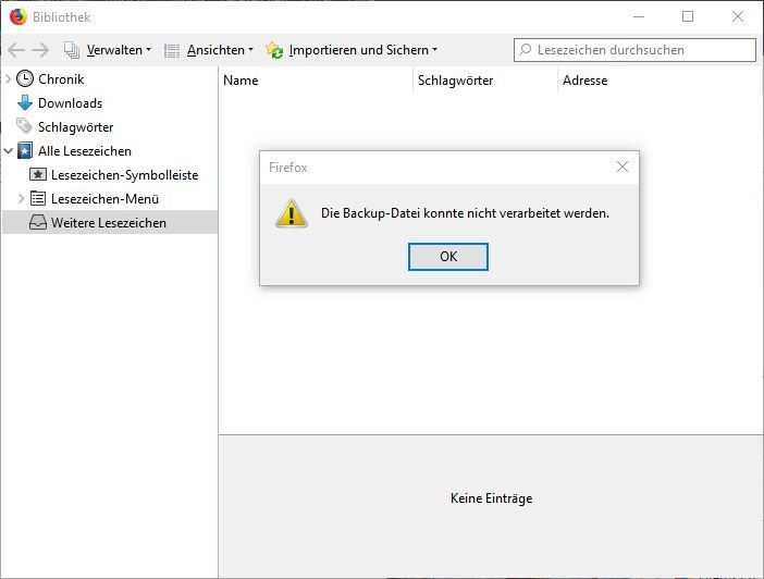 Es ist also ein Glücksspiel, ob aus der bookmarks.html importiert wird.