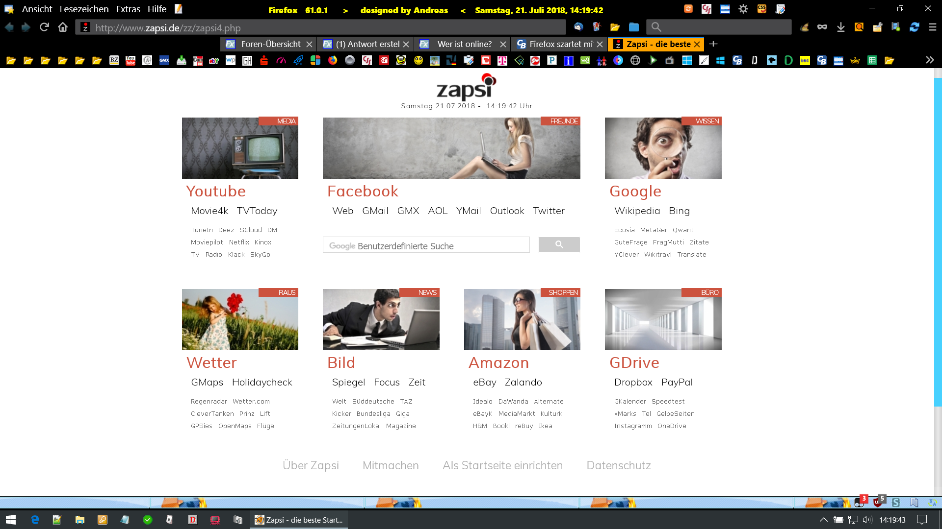 zapsi ist eine der beliebtesten Startseiten wegen der Links-ist übrigens sehr bekannt.Das automatische Einrichten der Startseite Danke! http://www.zapsi.de habe ich als 1.versucht,klappt aber auch nicht. Das es habe ich noch nicht gesehen und auch nicht mit eingegeben, Bitte, wie geht das im abgesicherten Modus starten?