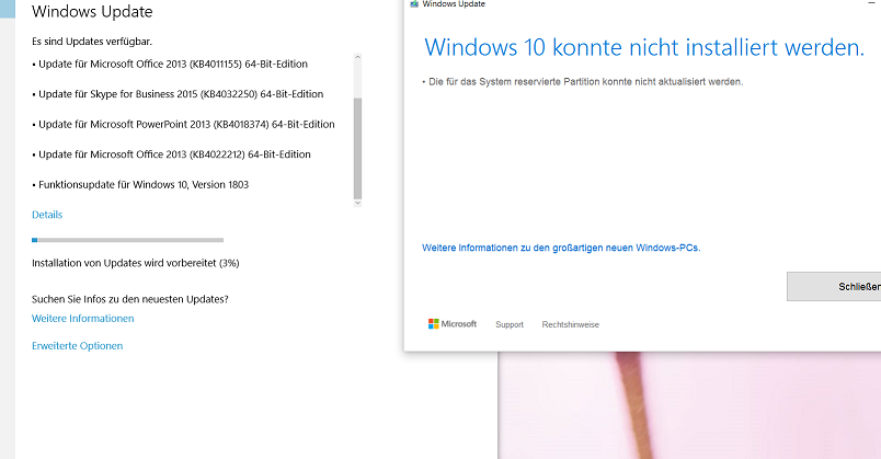 Seit der Windows Version 1511 kann mein Sohn kein Windows-Update mehr auf die Version 1803 machen...