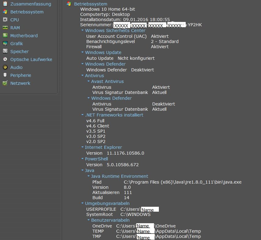 Mein Sohn hat Windows 10, Home Vers. 1511 Betriebssystembuild 10586.1176...