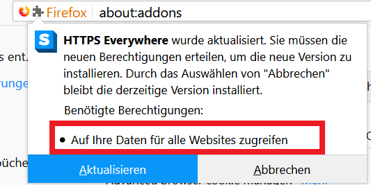 ist das o.g. Addon gefährlich? Habe nämlich eine Meldung im Browser bekommen (Addon ist zwar momentan deaktiviert) dass das Addon aktualisiert wurde und neuue Berechtigungen braucht. Hier der Screen: