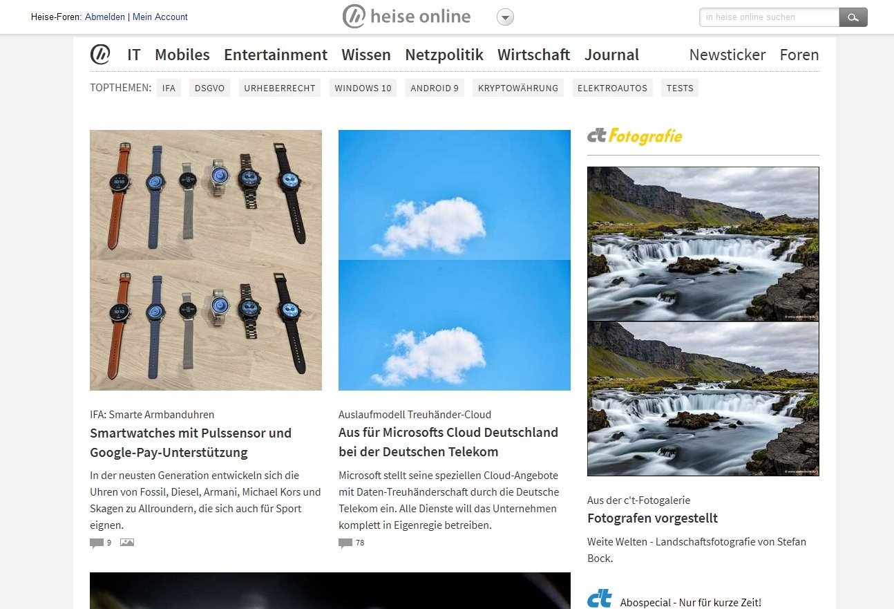 wenn ich https://heise.de oder auch https://heise.de/tp über die Sidebar aufrufe, dann werden (fast) alle Bilder auf dieser Seite untereinander doppelt dargestellt (Siehe Screenshot). Die gleiche Seite über die Lesezeichenleiste oder über einen anderen Link aufgerufen und die Seite wird fehlerfrei dargestellt. Auch nach einem Reload der Seite stimmt wieder alles. Ist nun 'heise.de' oder (mein?) 'Firefox' schuld... :-??